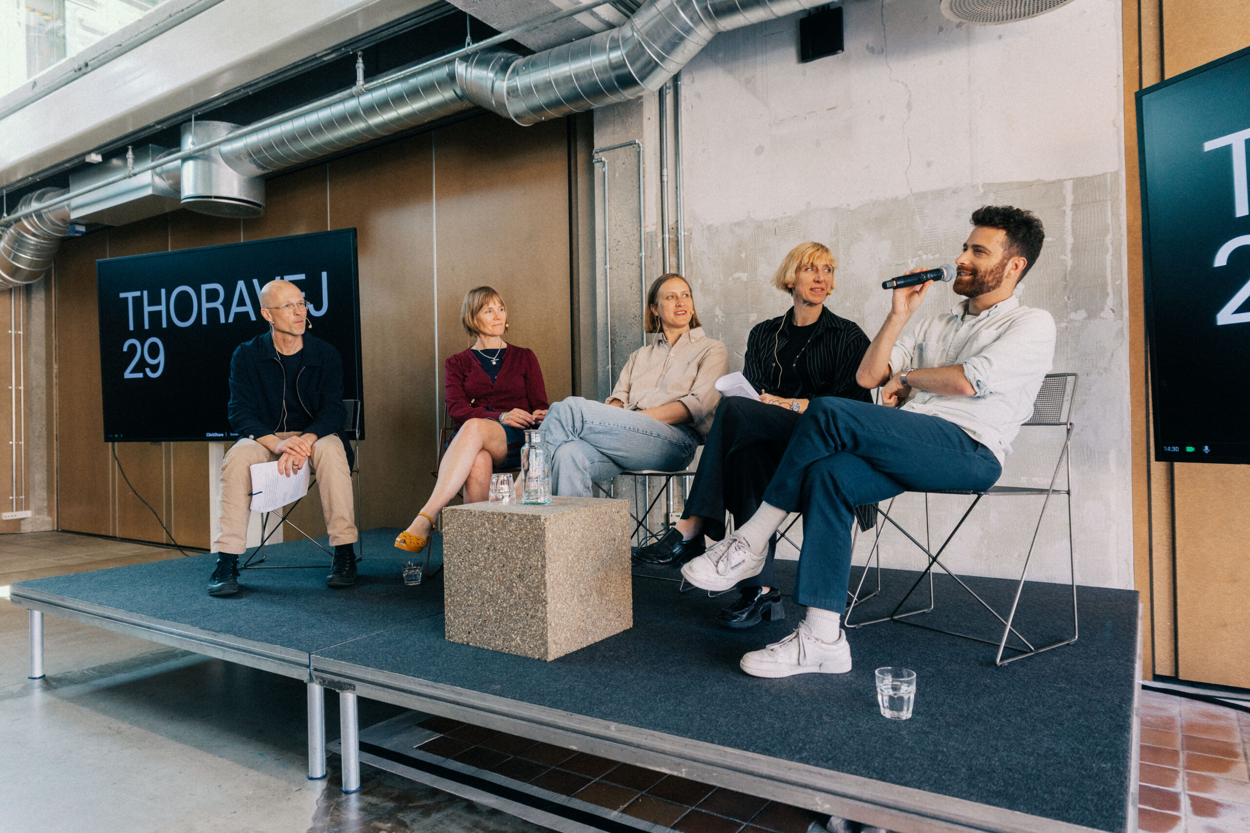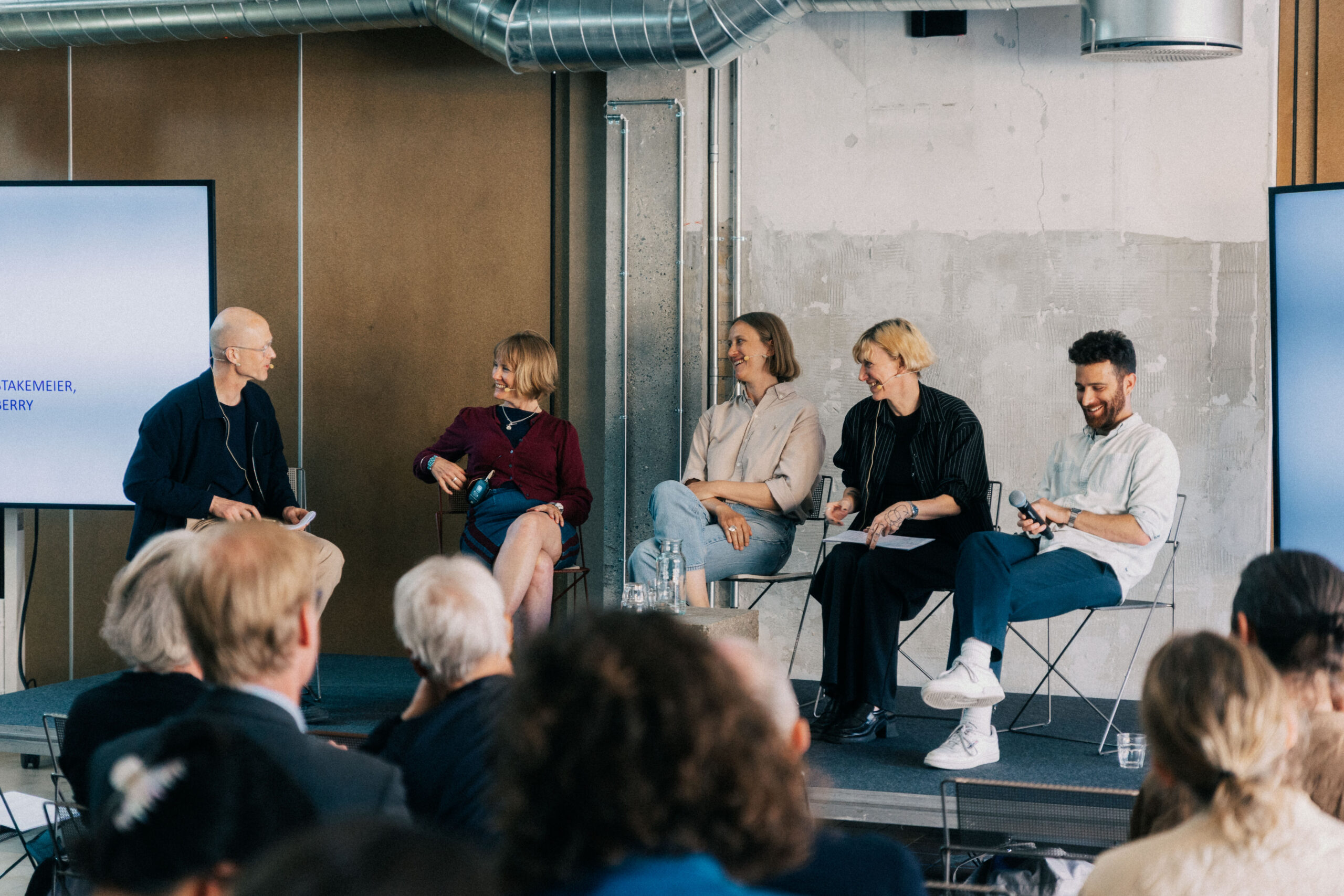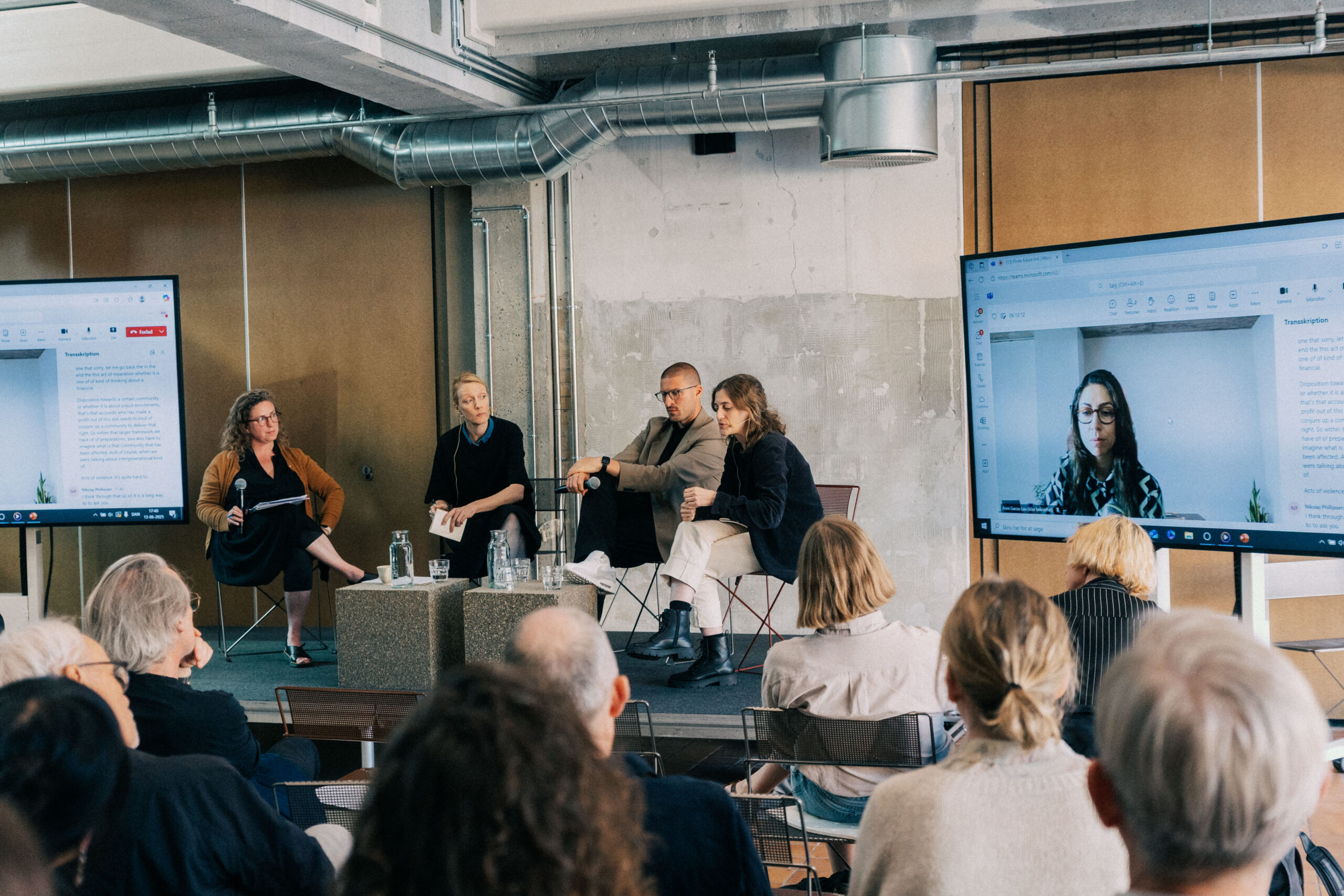 Art & Research : Symposium : Finite Future. Accountability and Sanctuaries. Panel discussion with Josephine Berry, Michala Paludan, Kerstin Stakemeier & Max Fox, moderated by Lars Bang Larsen. 13 June 2025 at Thoravej 29. Photo: Emil Basse.