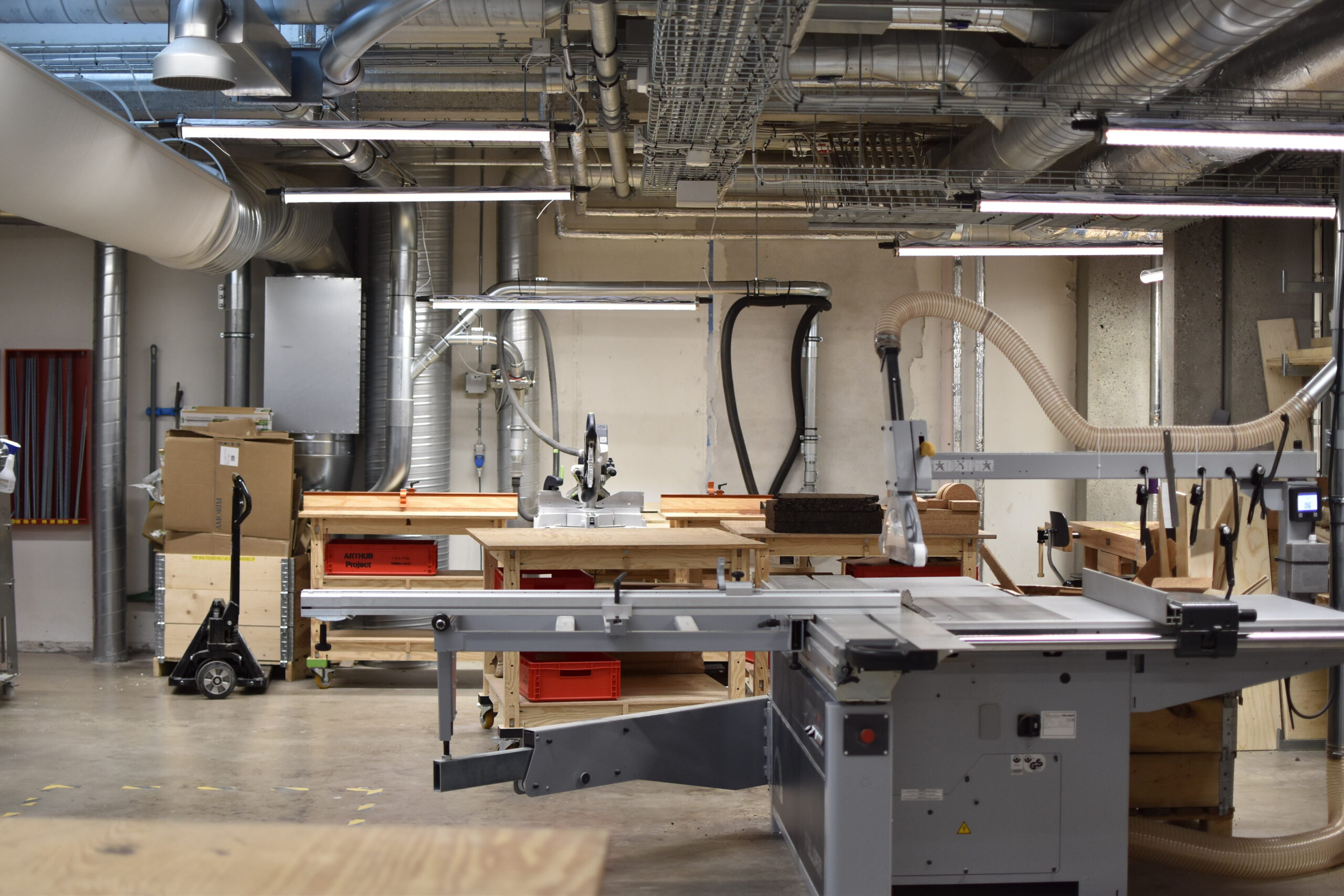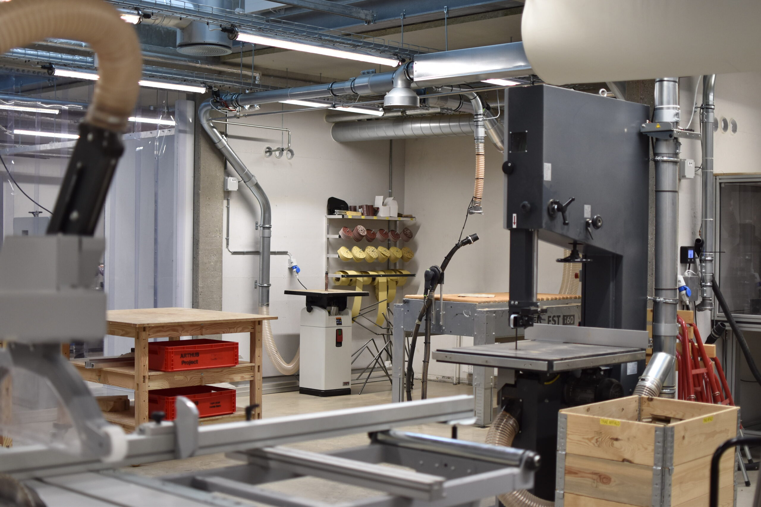 Et medlemskab i AHC_WORKS giver fuld adgang til fem værksteder på Thoravej 29. Faciliteterne kan anvendes til delproduktioner og kortere projektarbejde.