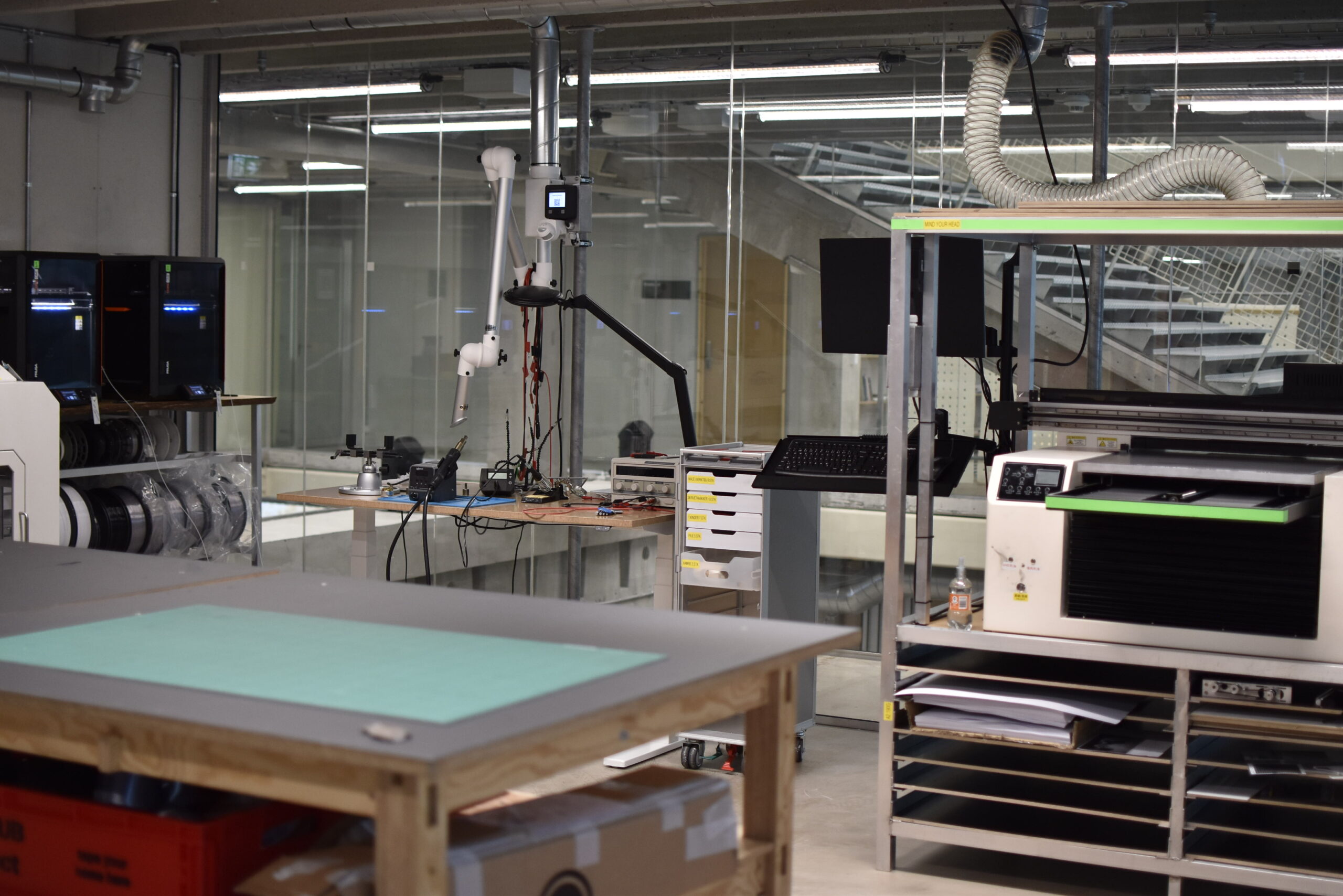 AHC_WORKS giver adgang til 5 værksteder på Thoravej 29, hvor du kan eksperimentere og producere med støbning, metal- og træforarbejdning samt digitale produktionsformer indenfor CNC-fræsning, 3D-print og laserskæring.